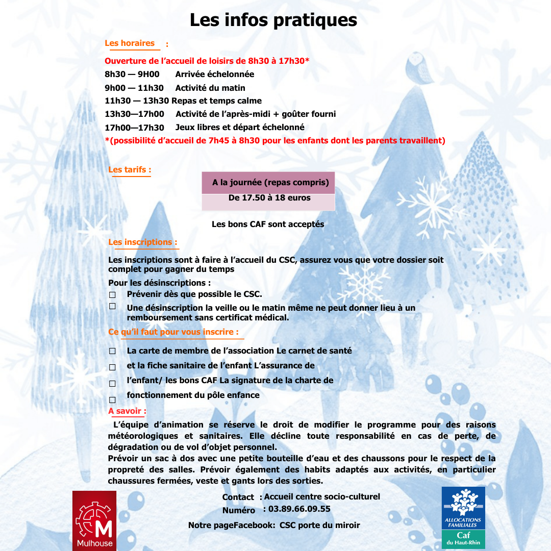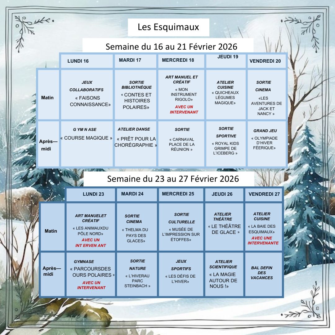 Programme des vacances d'hiver pour les enfants de 3 à 5 ans