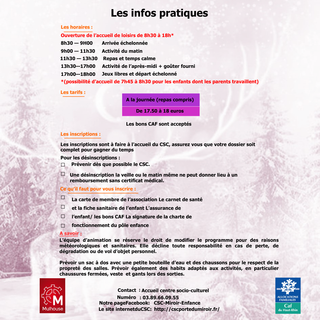Programme des vacances d'hiver pour les enfants de 6 à 11 ans